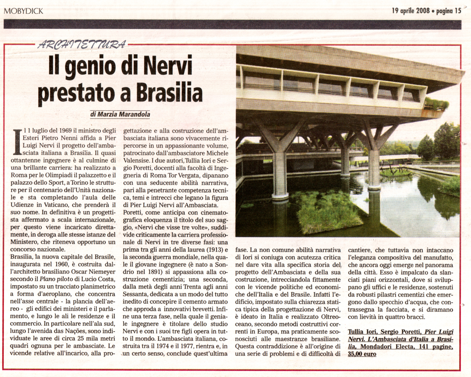 - T. Iori, L'Ambasciata d'Italia a Brasilia, in T. Iori, S. Poretti, Pier Luigi Nervi. L'Ambasciata d'Italia a Brasilia, Electa, Milano 2008, pp. 53-81;