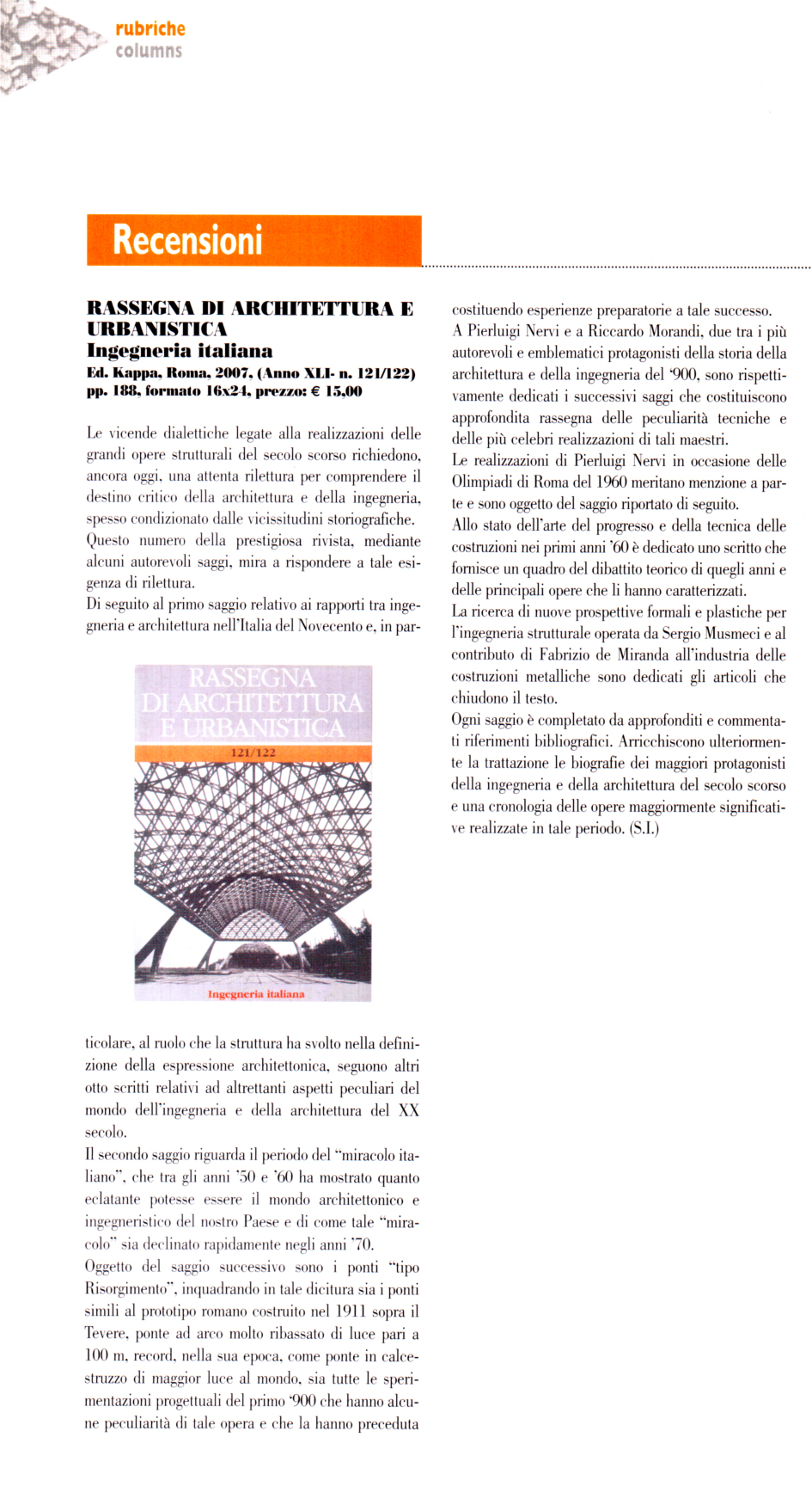 - •T. Iori, S. Poretti (a cura di), Ingegneria italiana, numero monografico di «Rassegna di architettura e urbanistica», 121-122, gennaio-agosto 2007;